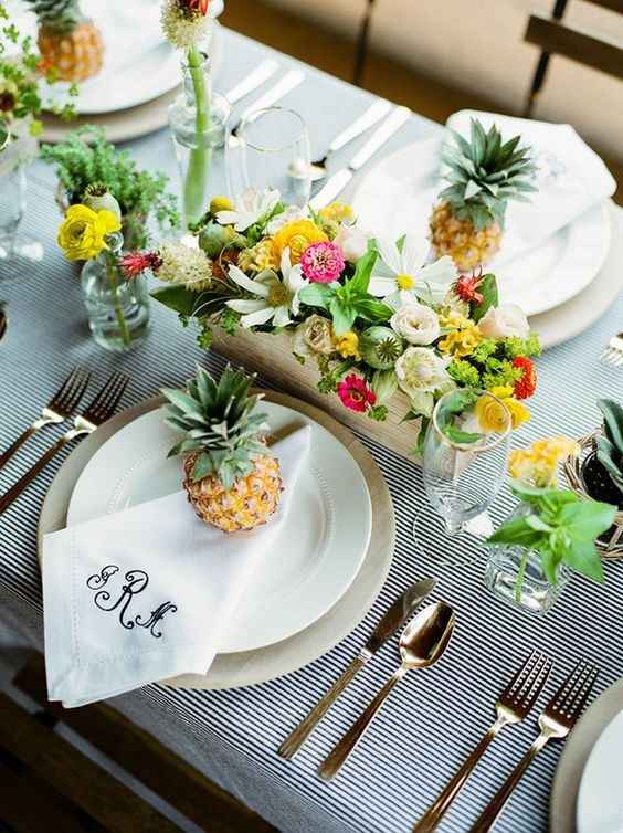🌸 3. Centros de mesa con frutas tropicales