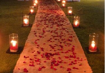 🕯️ 2. Caminos de velas y pétalos en la arena