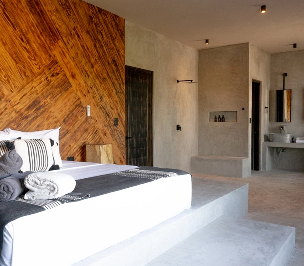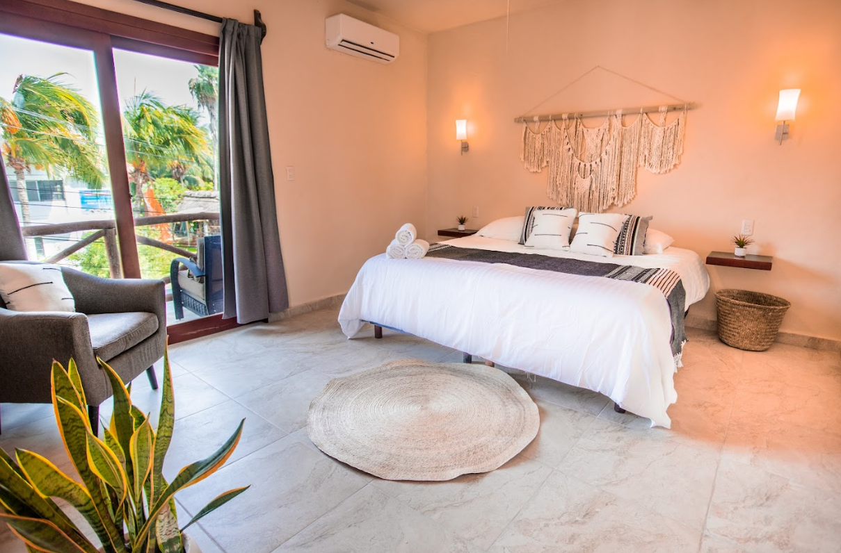 Esta propiedad se adapta perfecto a quienes buscan un espacio privado, natural y sin interrupciones. Puedes hospedarte aquí y organizar tu ceremonia en un spot secreto de la isla con ayuda del equipo Macondo.
